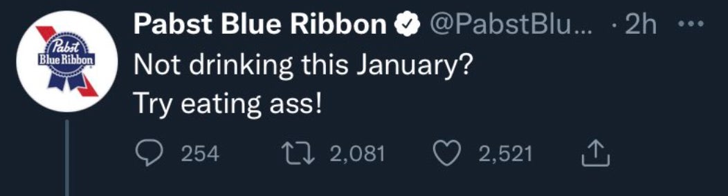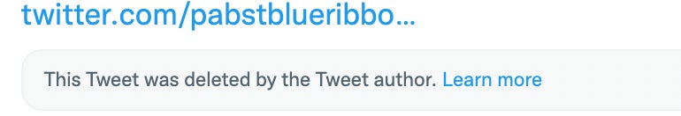 They deleted it. They god damn deleted it. The first time anyone has paid attention to PBR since college and they deleted it. You just cannot have fun online anymore. It's Twitter, it's not even real life, and a beer can't suggest you eat ass in lieu of drinking anymore? It's such a shame.