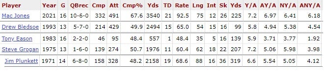 But I'm speaking as someone who has seen every Patriots quarterback since they first moved to Foxboro and went from the Boston Patriots to the New England Patriots (and were all ready to go with "Bay State Patriots" until someone pointed out to ownership they'll forever be called "the B.S. Patriots") when I say that Jones has had nothing less than the best rookie season by a quarterback they've ever had. And it's not even close.