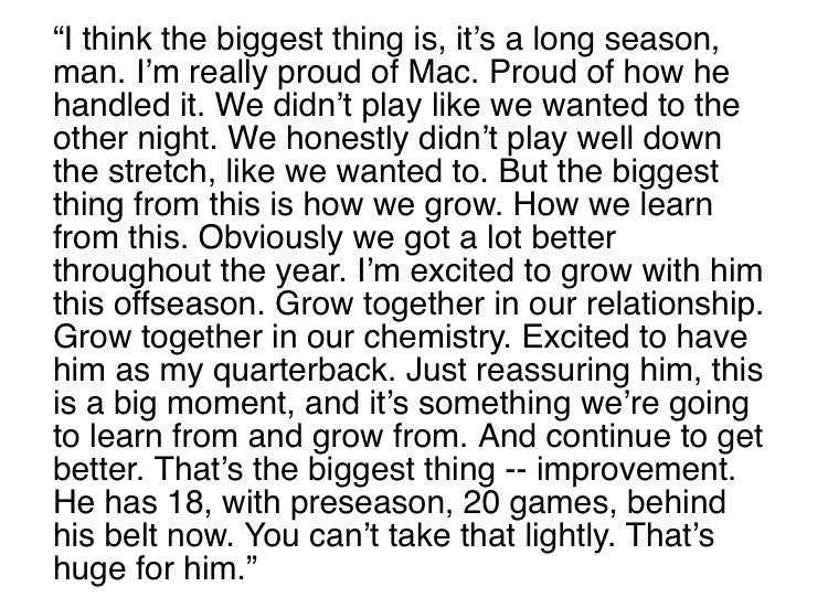 Kendrick Bourne, who was maybe the player on the Patriots roster who stepped up the most in Buffalo, with 7 catches on 8 targets, 77 yards and his team's only two touchdowns, said everything you'd want to hear from a veteran about how he likes being led by the rookie. That he's all about team goals, that making the playoff in their first year together is an accomplishment they're proud of, but he expects bigger things ahead: