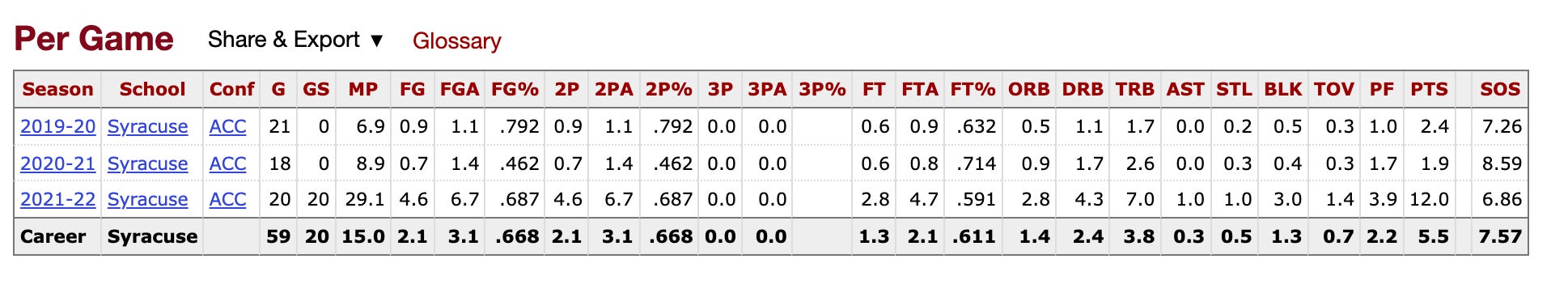 Now is he a stud that dominates games? Heavens no, but there's been a noticeable improvement on his end this year no question. Currently Edwards has the highest efficiency rating on the team! Boeheim even went out of his way to say Edwards is better than 90% of the centers in the country just a few days ago.