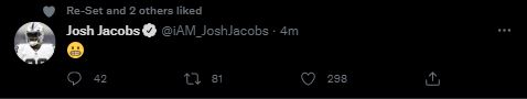 Running back Josh Jacobs tweeted a grimacing face emoji on January 30 and then quickly deleted it, but not before it was captured by another Twitter user.