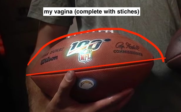 "Excuse me, ma'am, my pus… my vagina is a football."