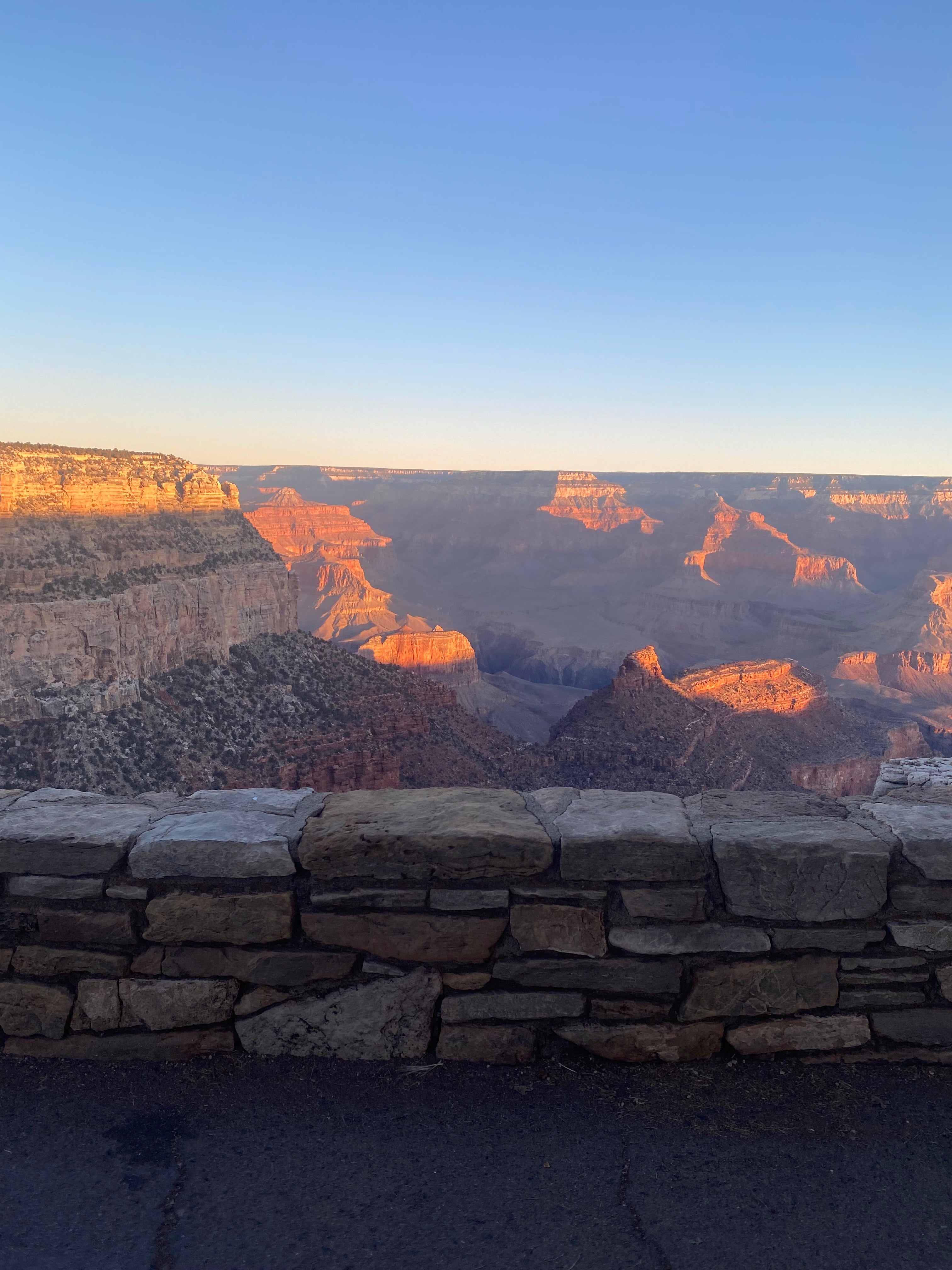 We got to the Grand Canyon at nightfall. There is nothing to do around the Grand Canyon, so our plan was to chill out and not waste money on a hotel and wait for the sunrise. The sunrise over the Canyon was amazing. A religious experience. The sun made the landscape look like an ancient temple.