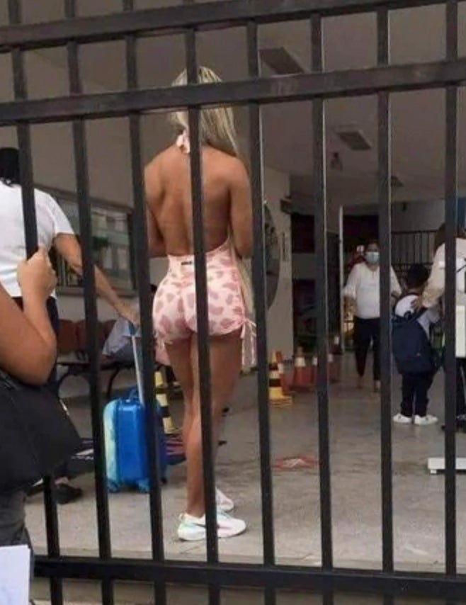 Vanesa Medina, a model and lawyer, was filmed on the school run this week at her child’s school in the Bolivian city of Santa Cruz de la Sierra.