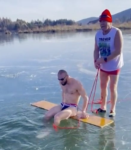 I feel like there's one of these videos every year and every year I find myself asking the same question - why? Like what could possibly motivate someone to jump in that lake, swim under the ice, and pop up on the other side frozen and disoriented. How is that fun? I'm all for a thrill, but the risk isn't worth the reward. What even is the reward? Bragging rights? I'm just so confused. What's even more confusing is how he got stuck in the first place. Not only was it a straight shot, but they had a rope tied to his waist and he still managed to get himself all turned around. Another thirty seconds and he would've been dead. You can see scared he was when he surfaced...