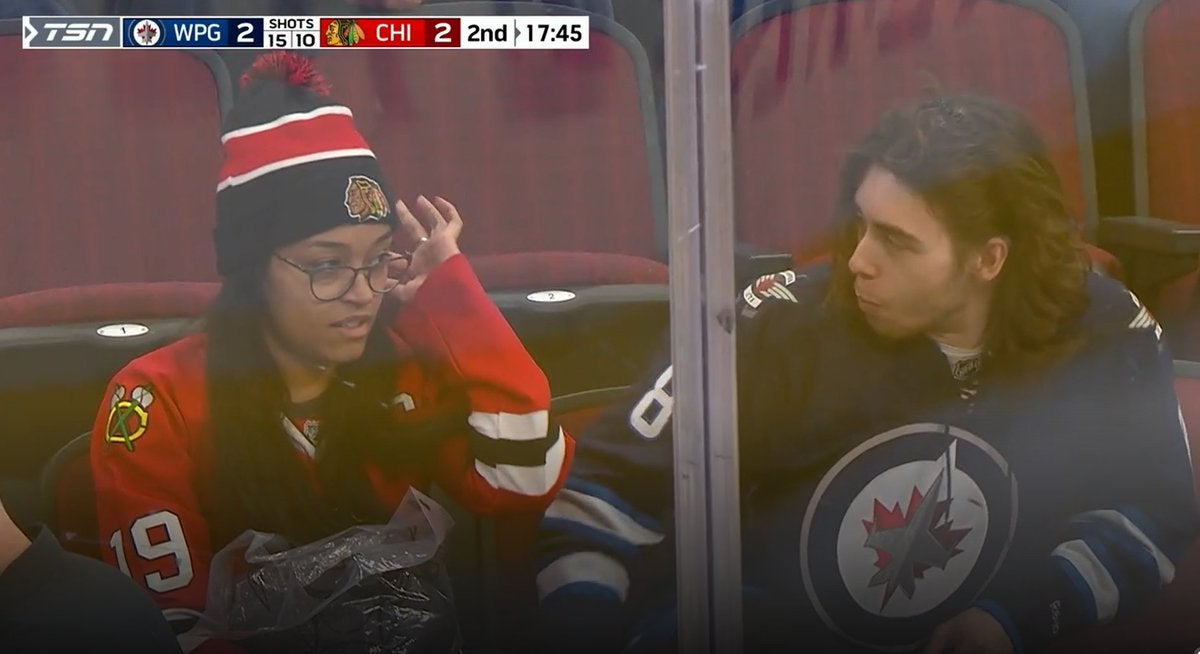 All is fair in love and war. You show up to a hockey game wearing the jersey of the opposing team and that team gets scored on? It doesn't matter if that's your girlfriend, your grandma, your 7th grade history teacher, whoever. They're taking a fart to the face regardless. Because as much as you may love that person next to you outside of the arena, you are sworn enemies for those 60 minutes between the opening puck drop and the final whistle. However, I wouldn't be shocked if this fella has a hearing with the NHL Department of Player Safety later in the day for this one.