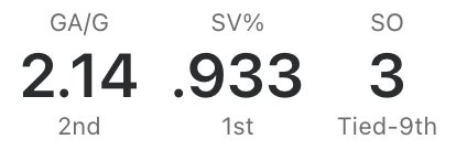 The top is Vasi, the bottom is Igor. Clear cut who's been better this season. Whitney's whole argument is that Vasi has the Stanley Cups and the additional trophies. There's no denying he's a great goaltender. He's phenomenal, but accolades have literally nothing to do with season by season play. Jonathan Quick has two Stanley Cups, you're gonna tell me you'd rather him in net than Igor this postseason? Based on the response to Whitney's argument, most of you would probably say yes.
