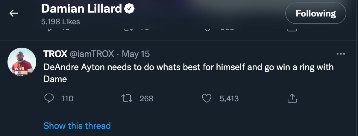 something tells me he'd be on board with a move like this. Maybe it ends up being a larger trade of some sort involving the #7 pick, who knows. But just add it all up. There were rumors about this a few weeks ago, Dame likes that tweet, and now Zach Lowe is talking about it. That's……interesting, and probably not an accident.