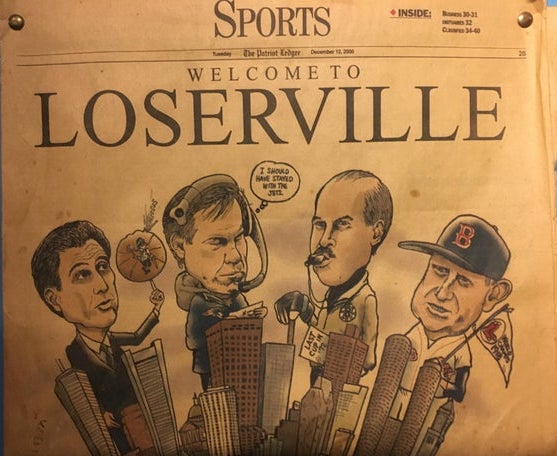 So yeah, the world was pretty nice about the whole "Finally Won Something After 40 Years of Futility" narrative. Plus, the region hadn't won a championship in any sport in 15 years. The Red Sox were still famous for their collection of the most excruciating losses in history. Rick Pitino finished the utter destruction of the Celtics. In an absolute lowest of low points, the City of Boston held a parade for Ray Bourque so he could show off the Stanley Cup he'd won. In Colorado. And life was filled with headlines like: