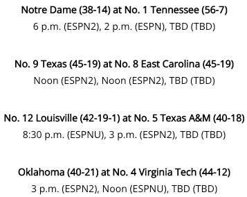1. Catholics vs. Confederates -Tennessee & Notre Dame is all over my radar. The Vols have been the runaway #1 team in the country since basically day 1 and for good reason. The lineup is absolutely stacked top to bottom mixed with a stable of arms and by far the biggest Fuck You attitude in the country. It's hard for me to remember a team as dominant as Tennessee. Maybe the 2009 LSU Tigers that only lost to the University of Illinois at home en route to winning the national title? It's hard to say. But for now I know that the Volunteers are the surefire favorites to win the whole thing.