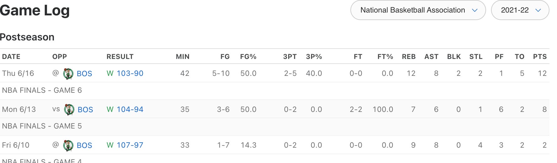 I know that Game 4 line looks bad shooting wise, but there was no denying the impact he had in that game. Draymond figured out how to snap out of his funk and he had his fingerprints all over the closing of this series, especially defensively and as a facilitator. His reads were pretty much perfect in terms of his help defense and rotations which was huge because his active hands really making things tough for both Tatum and Brown on drives. I also thought he was really effective in terms of his transition defense as well. This is one thing you have to respect about Draymond. He talks shit, but he backs it up. It might kill me to even say that given what just happened, but that's the truth. He completely changed these last 3 games and once he started to hit jumpers like he did in Game 6 that's just the icing on the cake.