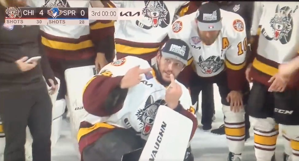 A little double bird salute to the Springfield Thunderbirds and their valiant effort in the finals. Seems borderline insolent at worst. But nothing too harmful. I mean nobody died or anything. But don't tell that to the league. Because Alex Lyon landed himself a one-game suspension for each middle finger he flipped after that win.
