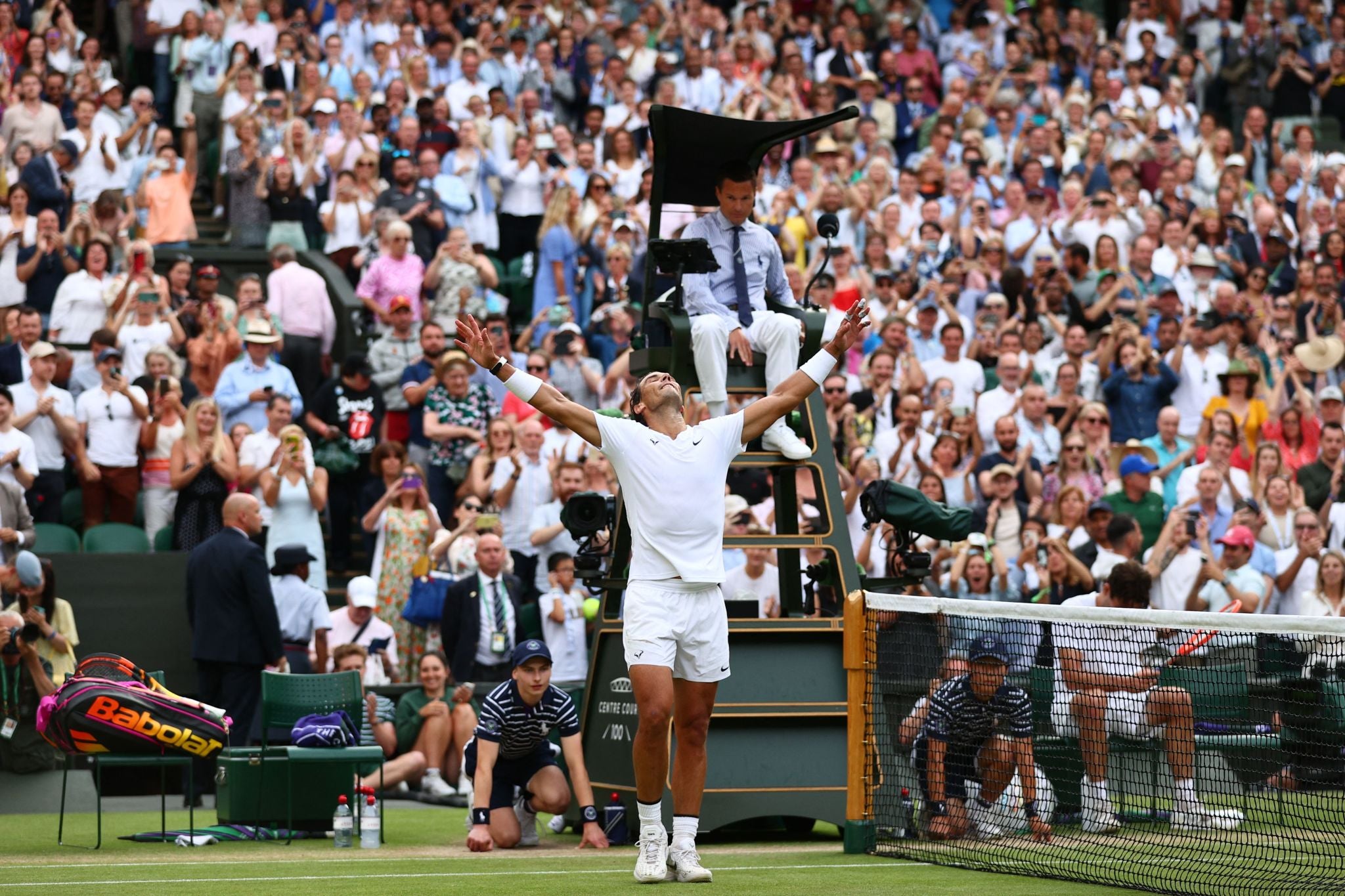 Rafa Nadal is inevitable. That's really all you can say after that 4 hour 20 min epic match on Centre Court at Wimbledon between Rafa and American Taylor Fritz. It's one thing to break Nadal, Djokovic, or Federer. It's another to go up a set or two on them. It's a whole different ball game to try and finish them off and actually knock 'em out of a grand slam. Taylor Fritz went up two sets to one today, but couldn't finish the job. Novak yesterday was down two sets to love and came back to win. They're just different animals.