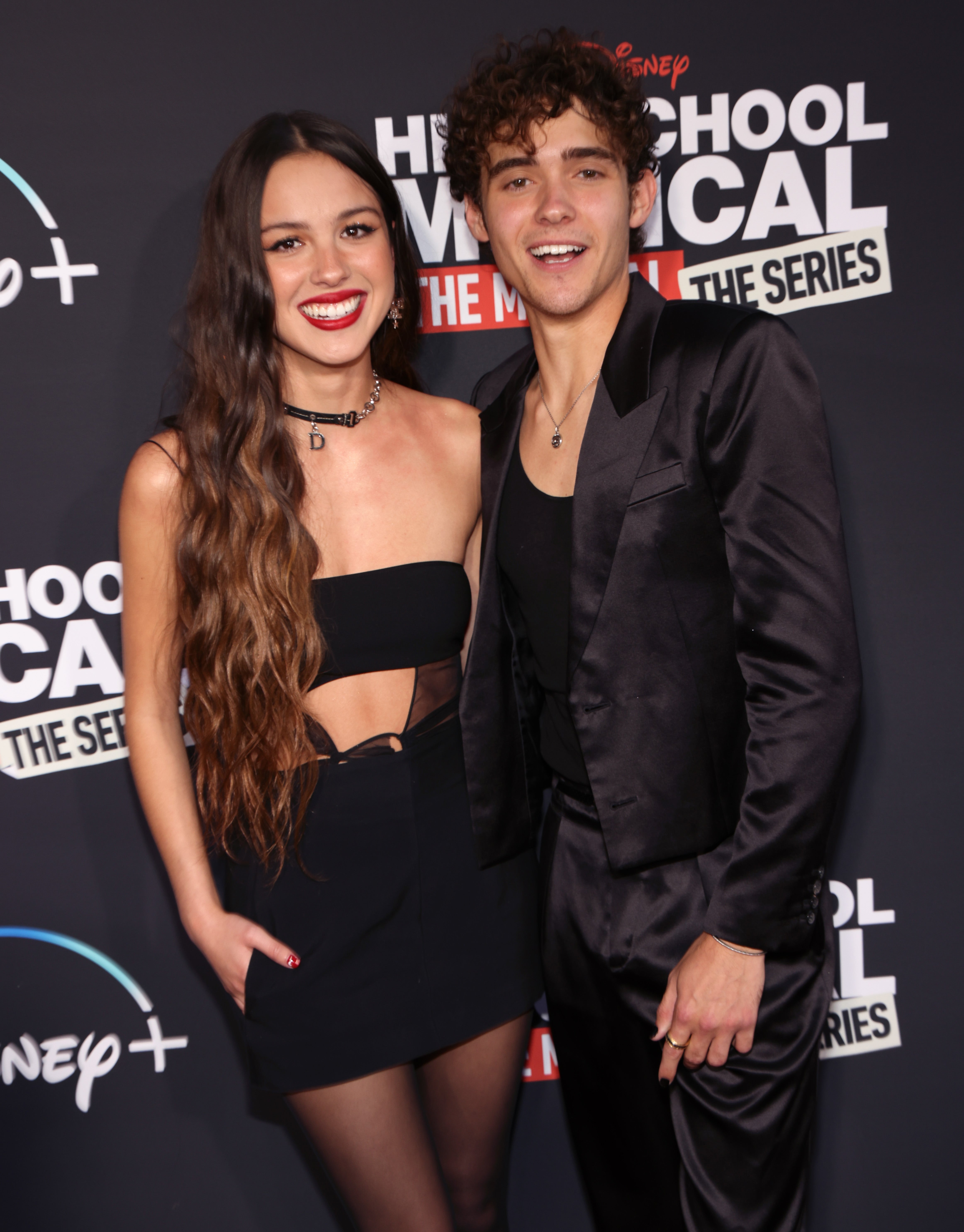 Olivia Rodrigo & Joshua Bassett are pulling the best clean-cut publicity stunt we've seen in awhile attending the High School Musical: The Musical: The Series red carpet together. After Olivia's hit song 'drivers license' about Joshua Bassett in 2021 her career was launched to new levels overnight. Since the hit song & just about all of the songs on Olivia's freshman album 'Sour' suspected to be about Joshua Bassett the co-stars weren't the best of friends. For the first time since then they make their public friendship debut (?) on the red carpet.