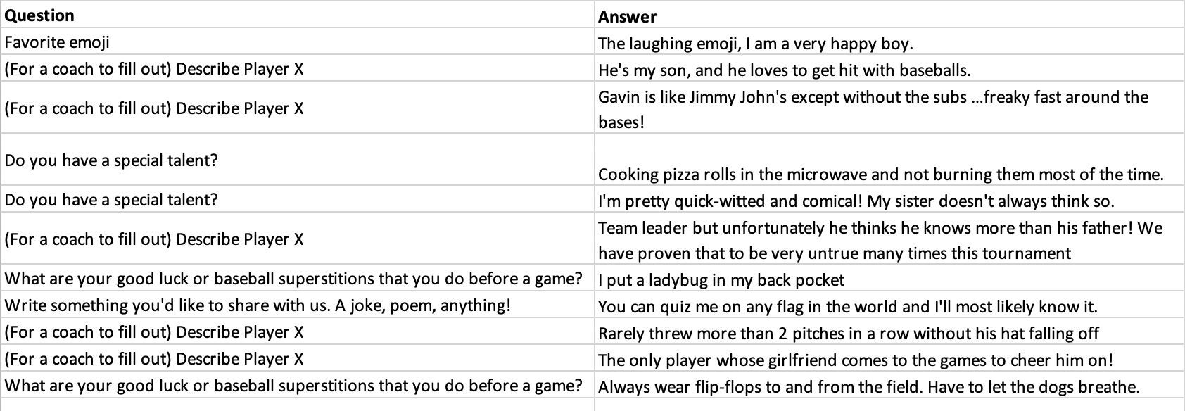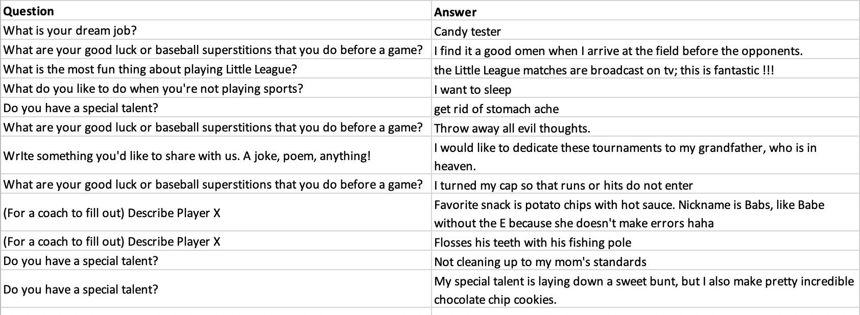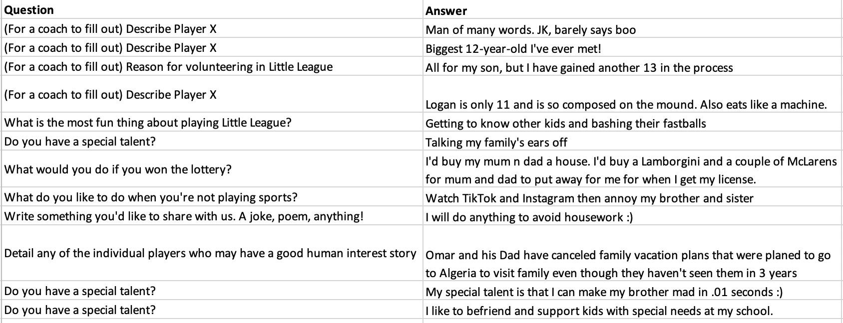 So, ESPN has the players and coaches fill out a Q+A form that will help tell stories and narratives that could be used for the broadcasts. Mike Monaco is calling a bulk of the games from Williamsport, and he tweeted out some of the best answers to these questions. Some of them are TREMENDOUS. Let's take a look player by player (most names were not included).