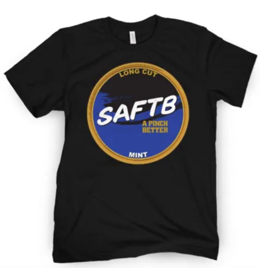 He also claims we followed him and then unfollowed him after stealing his designs. To my knowledge we would never follow another merch producer. The main inspirations for the T-shirt were the old SAFTB dip tin t-shirts that were fire back in the day. Just wanted to make the new generation of packers a t-shirt.