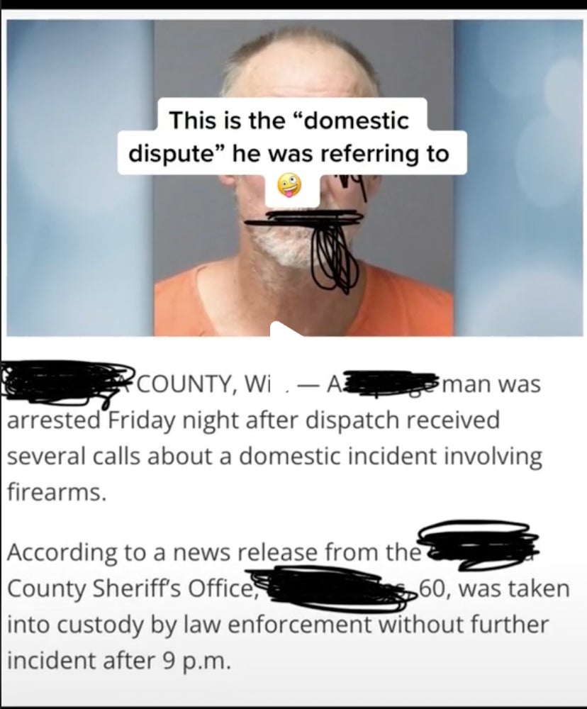 She may have had a few cans of loud mouth soup but still, I aspire to have one tenth of her confidence. I mean she didn't give that guy an inch. Not only that, she accurately predicted the fact that he had a "domestic incident" the week prior. Here's his mugshot from the end of the TikTok…