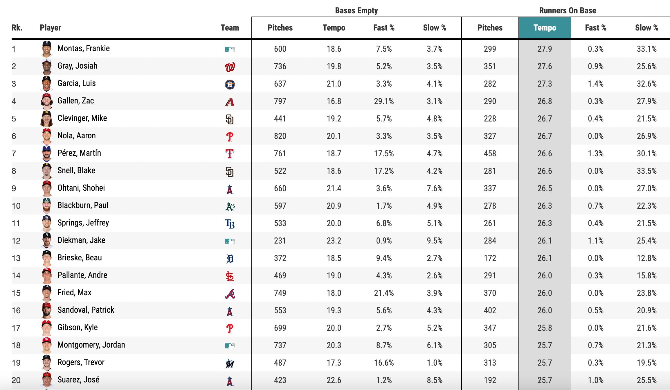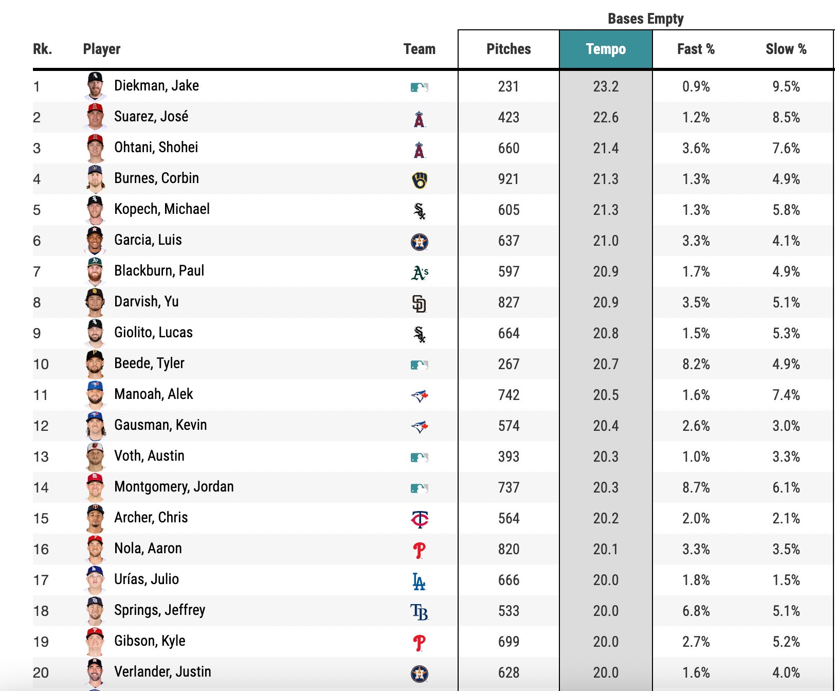 Just to give you an idea, here are the top 20 slowest paces with bases empty this year. Some pretty big names are going to need to drastically speed it up.