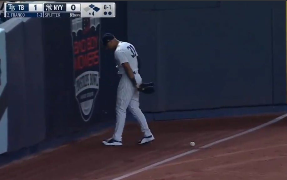 MLB's Worst Player Aaron Hicks Drops a Fly Ball And Doesn't Realize It's Fair, Costing The Yankees Multiple Runs - Promptly Pulled From The Game