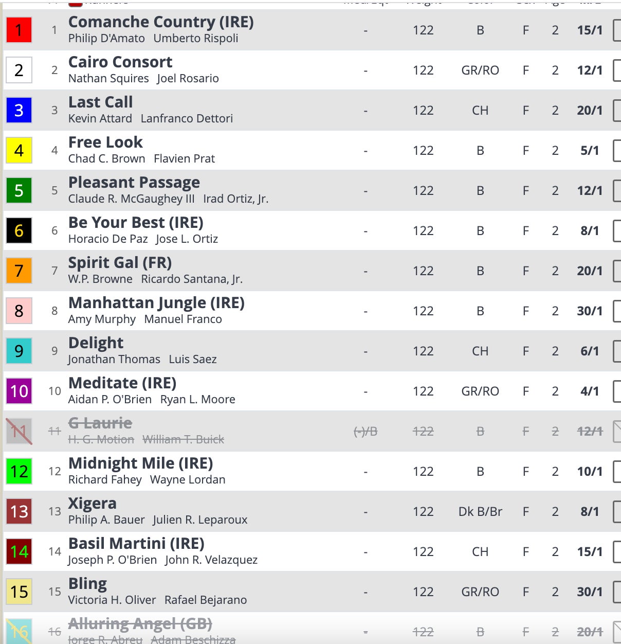 If you see Aidan O'Brien and Ryan Moore paired together in a big race like this you have to pay attention. That said, American horses have dominated this race. So that's a fear if you're going to try to put the No. 10 up top. I immediately go to a Delight or Free Look after seeing that. European horses haven't won this race since 2013. Basically the Big 10 basketball of this race. Chad Brown has won this race 5 times in 14 races. That's a pretty solid hit rate.