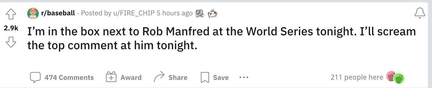 P.P.S. I'm slightly worried Manfred now comes up with something extra stupid this offseason to punish us all for tonight.