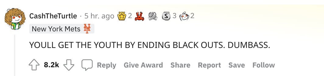 Earlier in the evening this post on r/baseball raised some eyebrows with the potential to ignite a few fireworks. Finally someone next to that prick to give him a piece of their mind for all of us. Well, a few hours later we got this masterpiece.