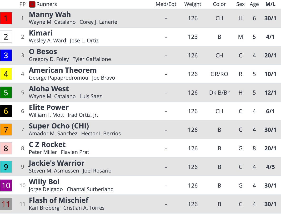 Worth noting that since 2007 only three American horses have won this race. Tends to be a loaded race and foreigners have dominated it. Aiden O'Brien is a star in this race, winning six times. Dude just knows how to get horses ready for turf. The American star is War Like Goddess and it's an easy reason to see why. Also like having Joel on it.