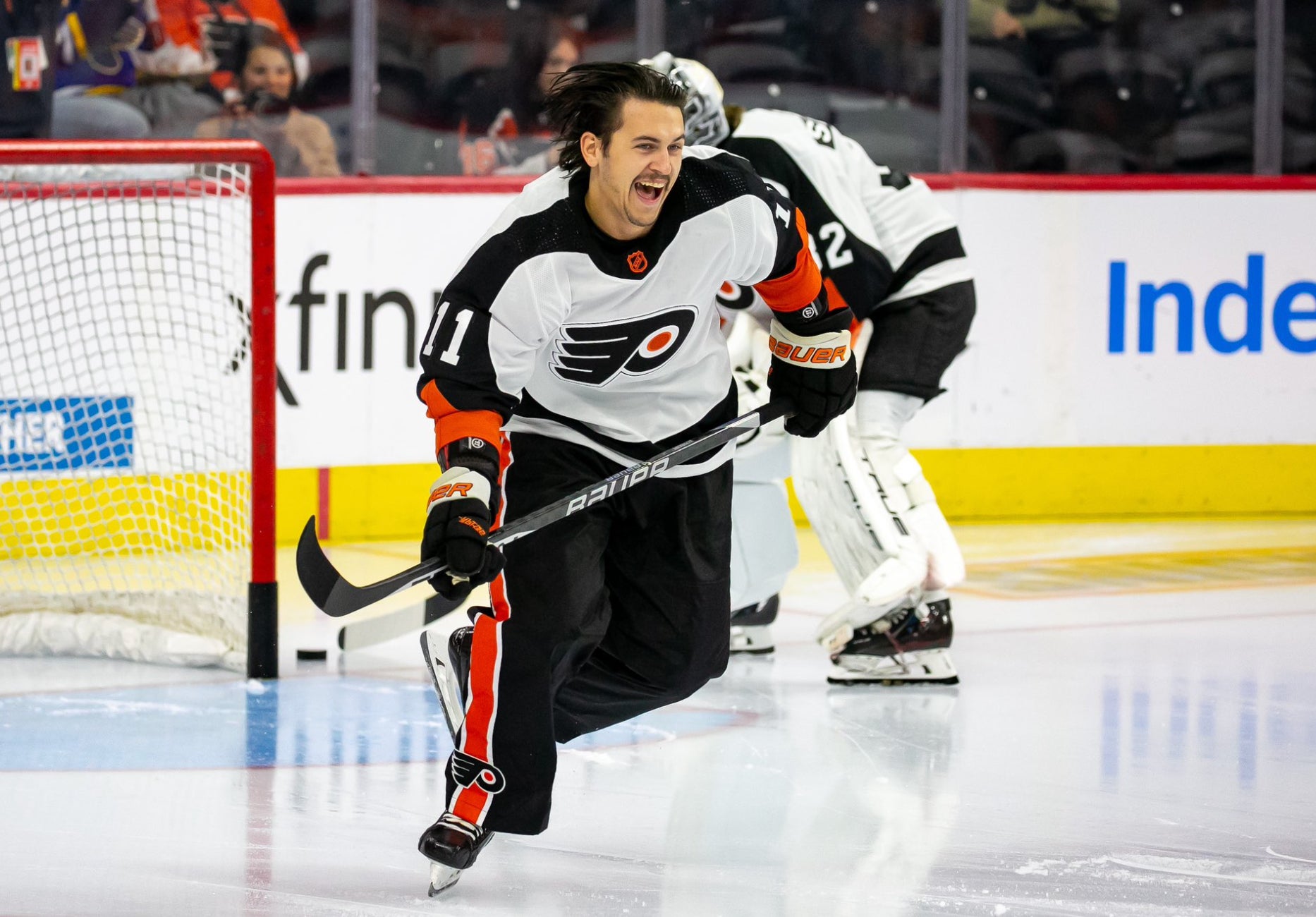 We knew the Flyers were bringing back the Cooperalls with their reverse retro uniforms this season. Heck, we even saw Travis Sanheim in a pair of them when the uniforms were first unveiled. But nothing, and I mean NOTHING, could have prepared us for how unbelievably hot they'd look when the entire team is rocking them during warmies in South Philly. Holy shit these are SPICY.