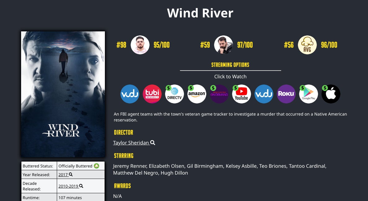 No thanks, fellas. No thanks. You can watch Wind river on Tubi or prime video through FreeVee, PlutoTV and RedBox with ads.