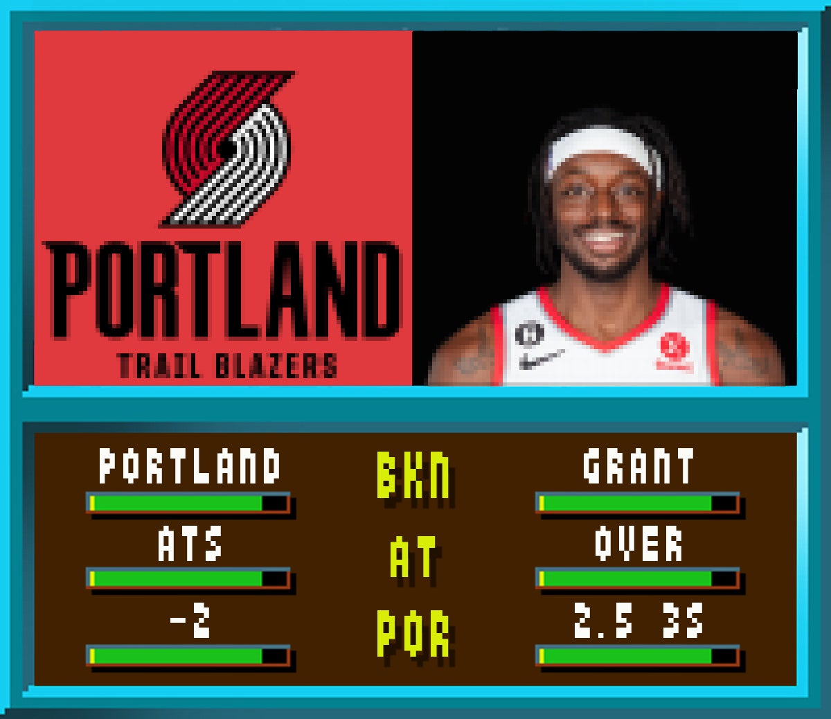 Brooklyn allows the 3rd highest 3 point percentage in the NBA and is bottom 10 in number of attempts allowed. Which should be their undoing tonight as Portland is the third best 3 point shooting team in the league. This is why I am also taking the Jerami Grant over on 3s.
