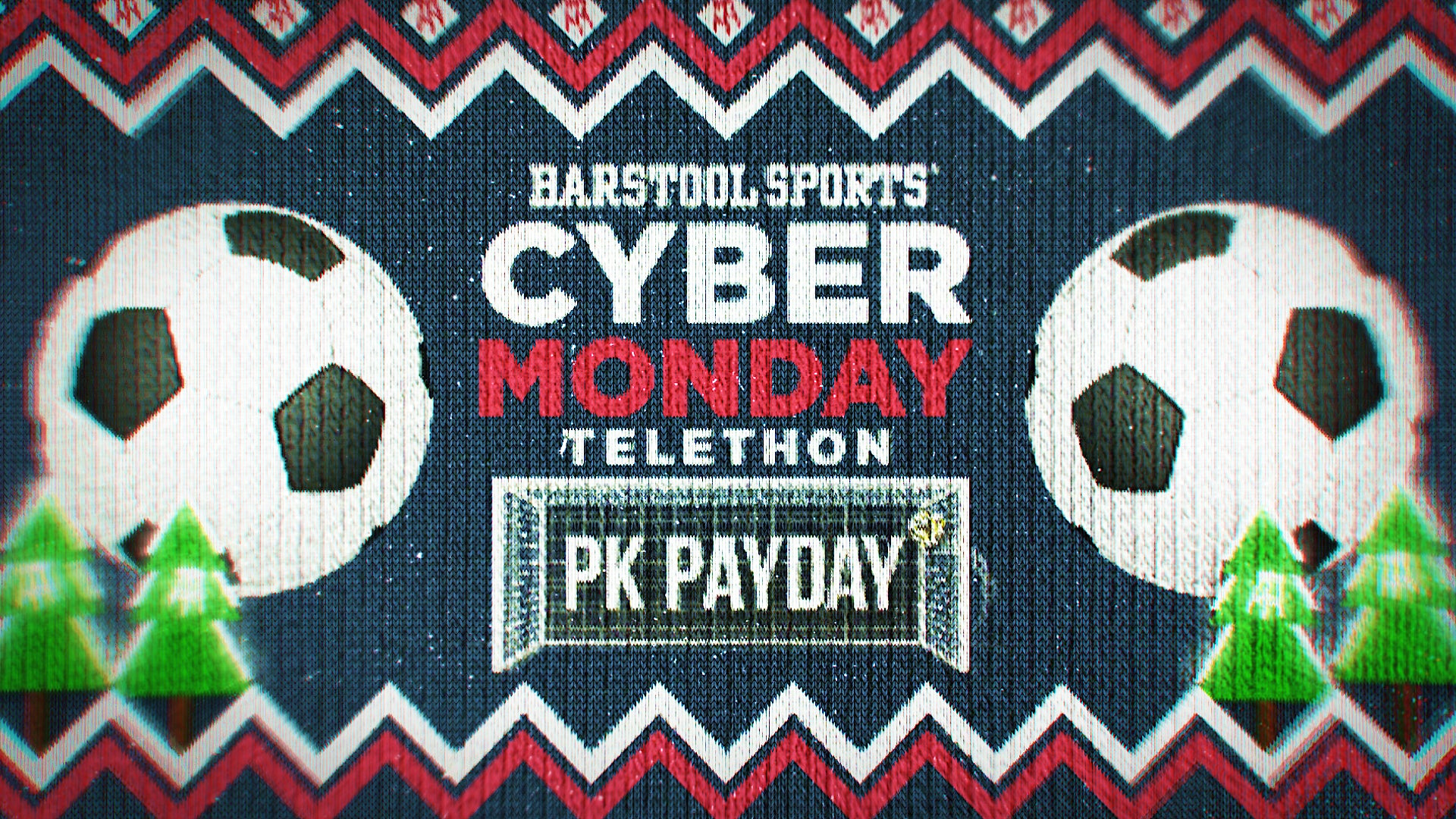 Tonight is our 7th Annual Cyber Monday Telethon. Everything at the Barstool store is 20% off all day and our livestream will start at 7 PM on YouTube, Twitter, Facebook, and the website. Our past telethons have pretty much all been punishment based. Last year, Jersey Jerry had to get dropped in the grossest dunk tank of all time. In other years, General Smitty almost got decapitated by a paintball gun. I got buried alive. A bunch of morons had to figure their way out of an escape room. But this year is different.
