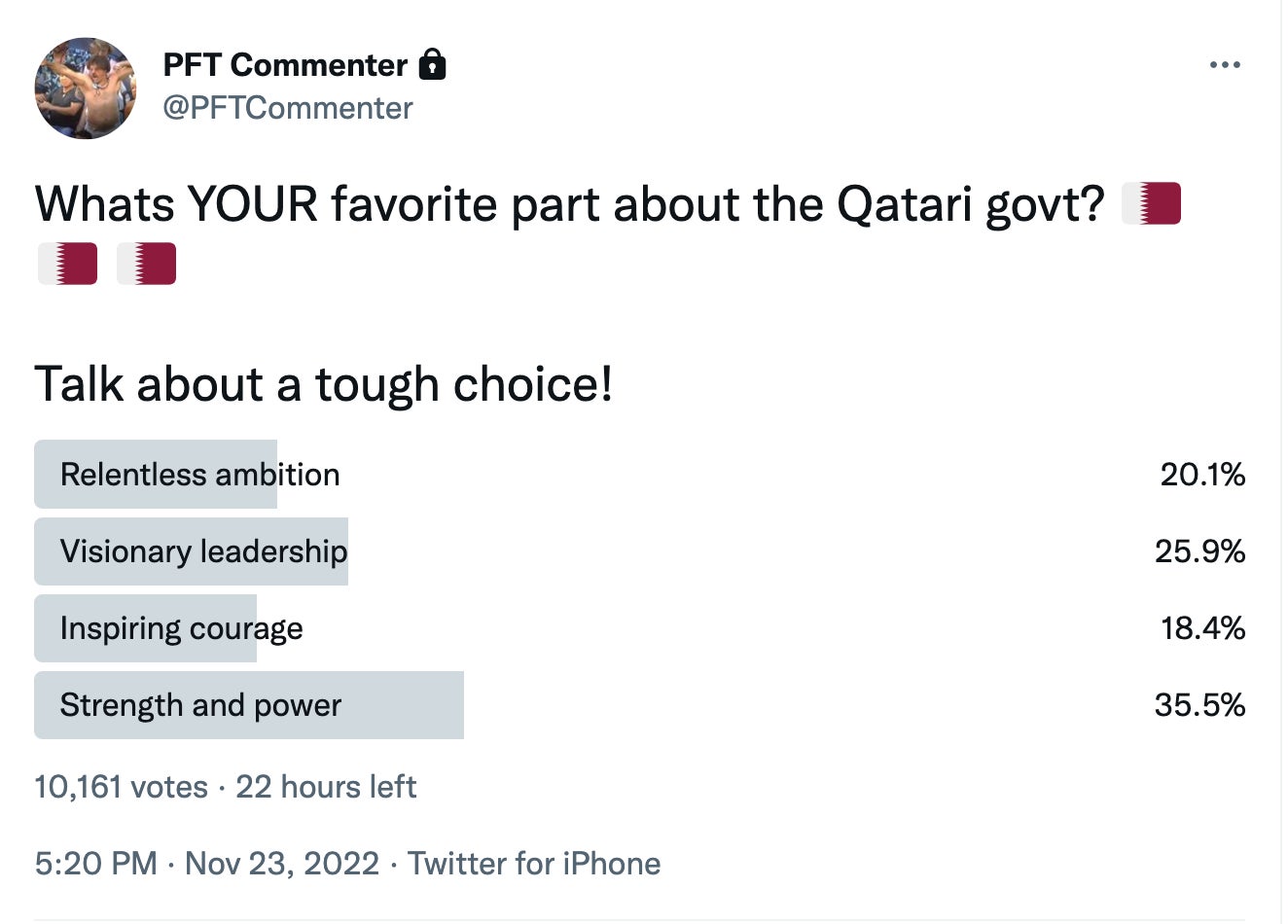 The FIFA world cup committee awarded the 2022 World Cup to Qatar because of its fantastic leadership, and besides its weather and infrastructure its simply a natural fit as a host country.