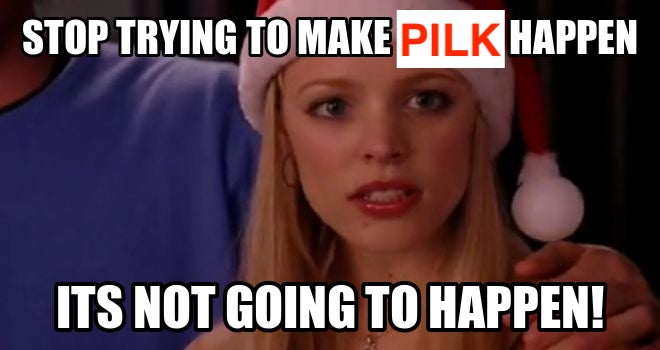Alright... so we've got an obvious nod to the Mean Girls Jingle Bell Rock scene, but... "naughty dirty sodas" and "pilk"? What's the ad angle here? I don't get it...