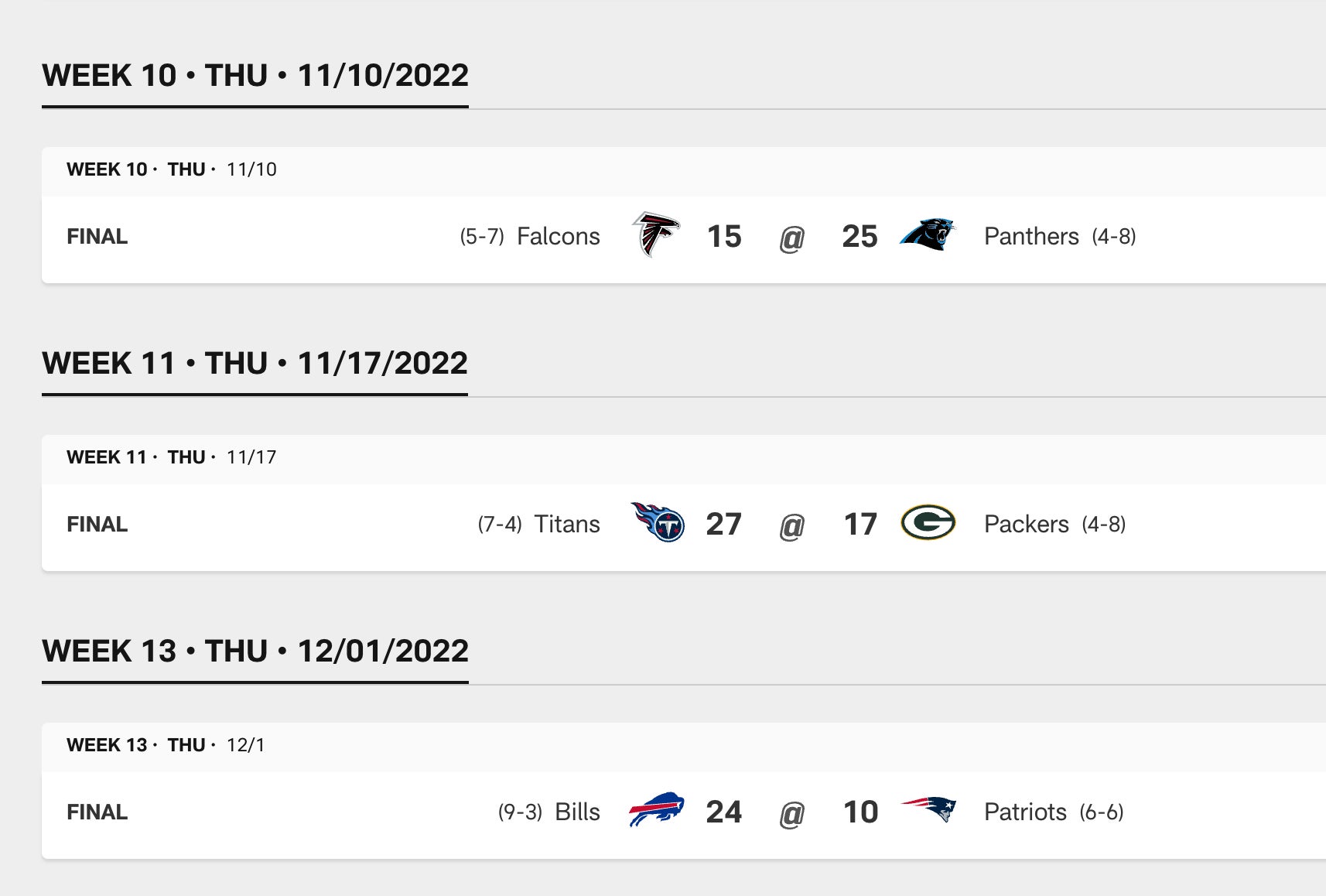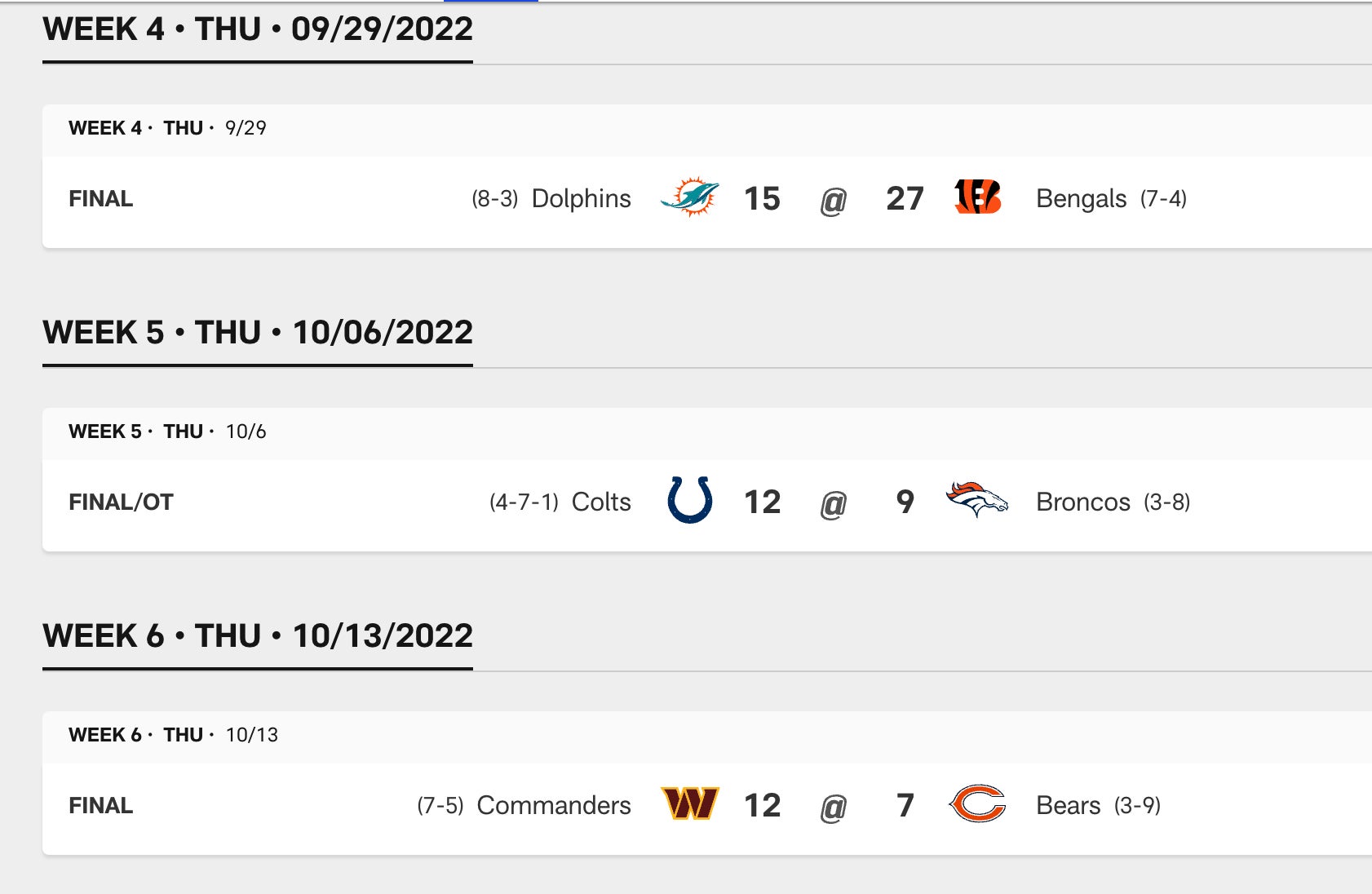 Speaking of things that are unwatchable right now, let's direct our attention to Thursday Night Football.
