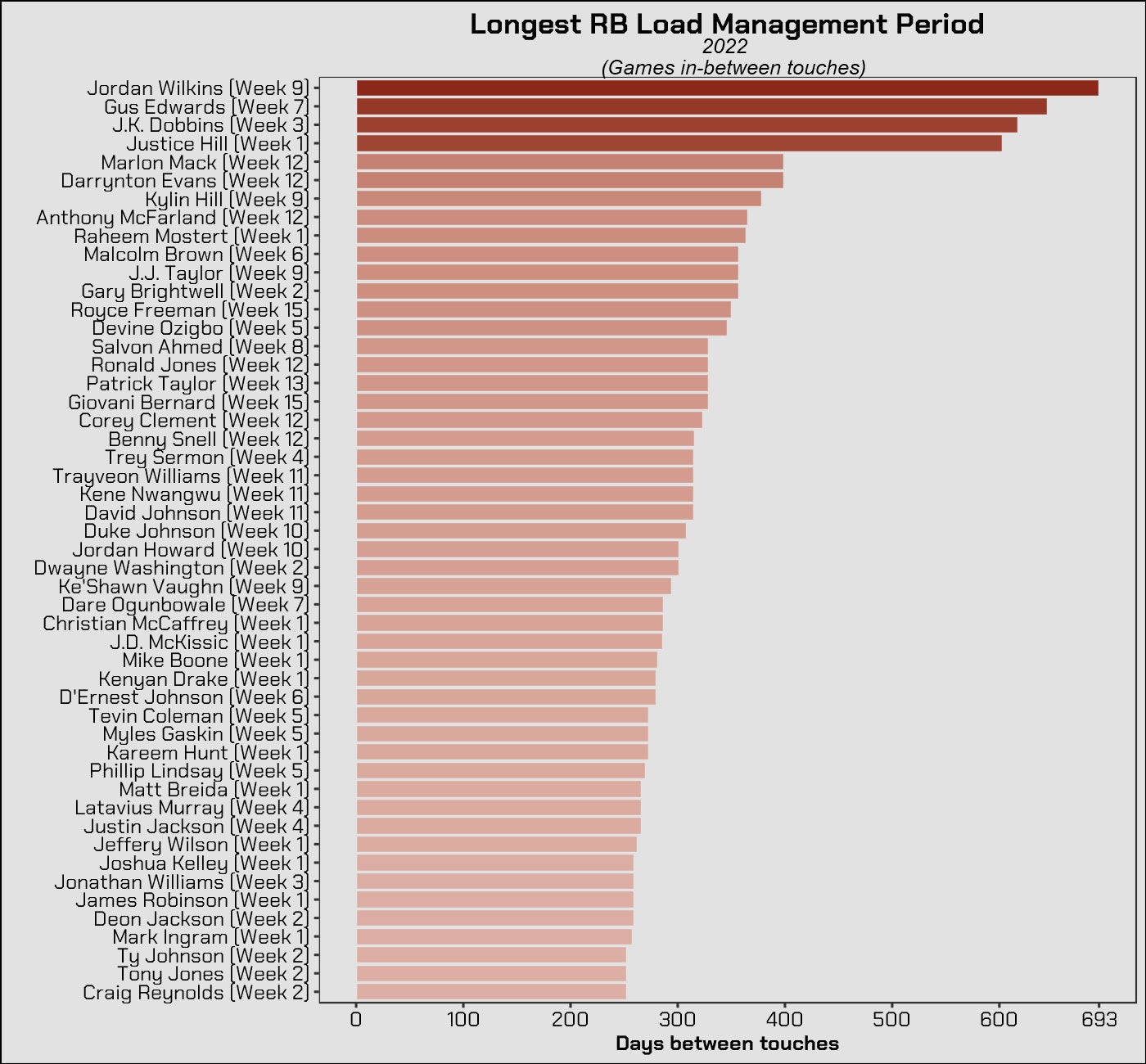 Nothing like coming back from the dead to go right back in your grave. But Giovani wasn't the only running back from football past to re-emerge into football present in week 15. Royce Freeman came back after 350 days of no touches and when I heard Scott Hansen say the name David Johnson I legit thought the ghost of fantasy football past took me back in time to warn past me what was to come. Johnson did have a carry earlier in the year but I trust you'll all forgive me for not having Rams vs Saints high on my game priorities from Week 11. Anyway, shoutout to all the running backs of football past listed below making a cameo in 2022 - even the few at the top that aren't on the Baltimore Ravens.