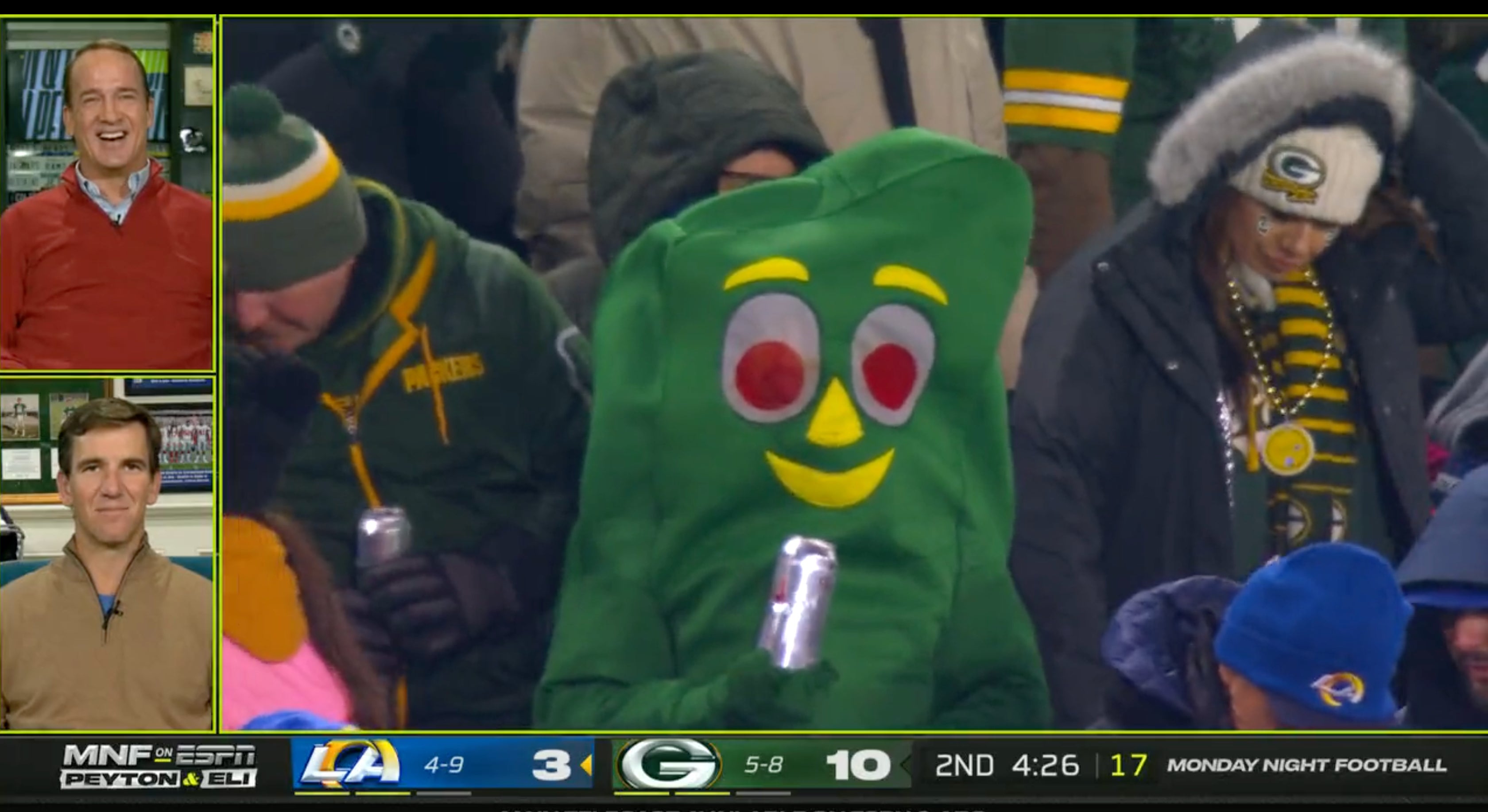 Gumby's blood is on your hands now, Manning brothers. You had the opportunity to save him and you chose to instead make him the butt of the joke. For shame.