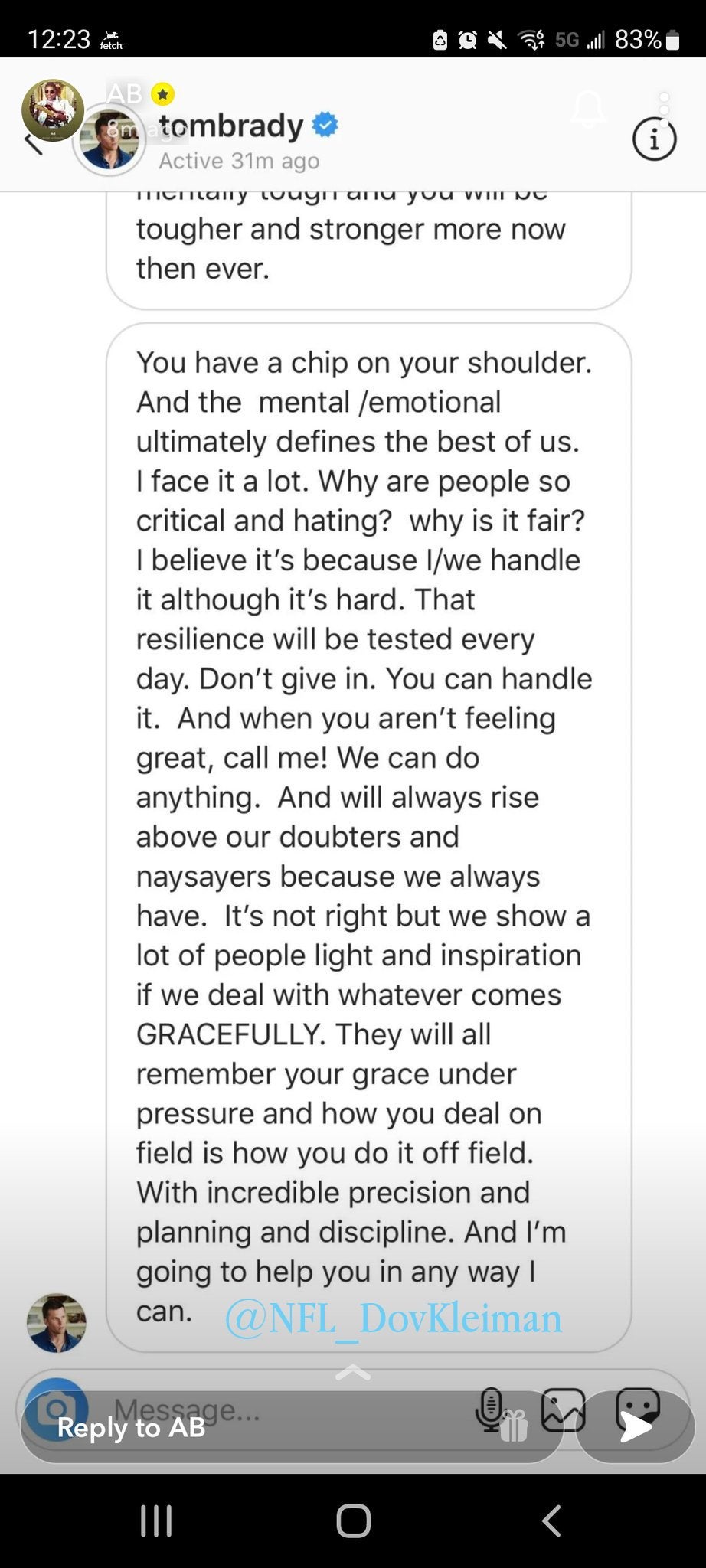 Antonio Brown Releases Yet Another DM From Tom Brady That Reveals the GOAT is a Billion Times the Man He Is