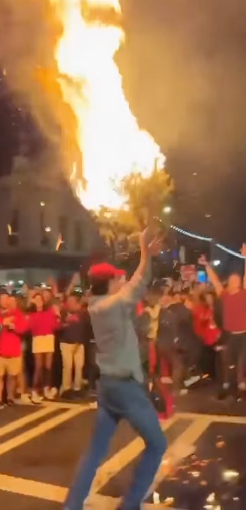 You know what? Good for them. Back to back champs they deserve it. Athens is the greatest college town in America and if they wanna light Christmas trees on fire after a national title they have every right to do so. My only problem is that the tree got thrown into the crowd. Can't be have that. That's the quickest way for a celebration to turn into a tragedy. Looking at you, big fella...