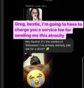 "Greg, bestie, I'm going to have to charge you a service fee for sending me this atrocity".