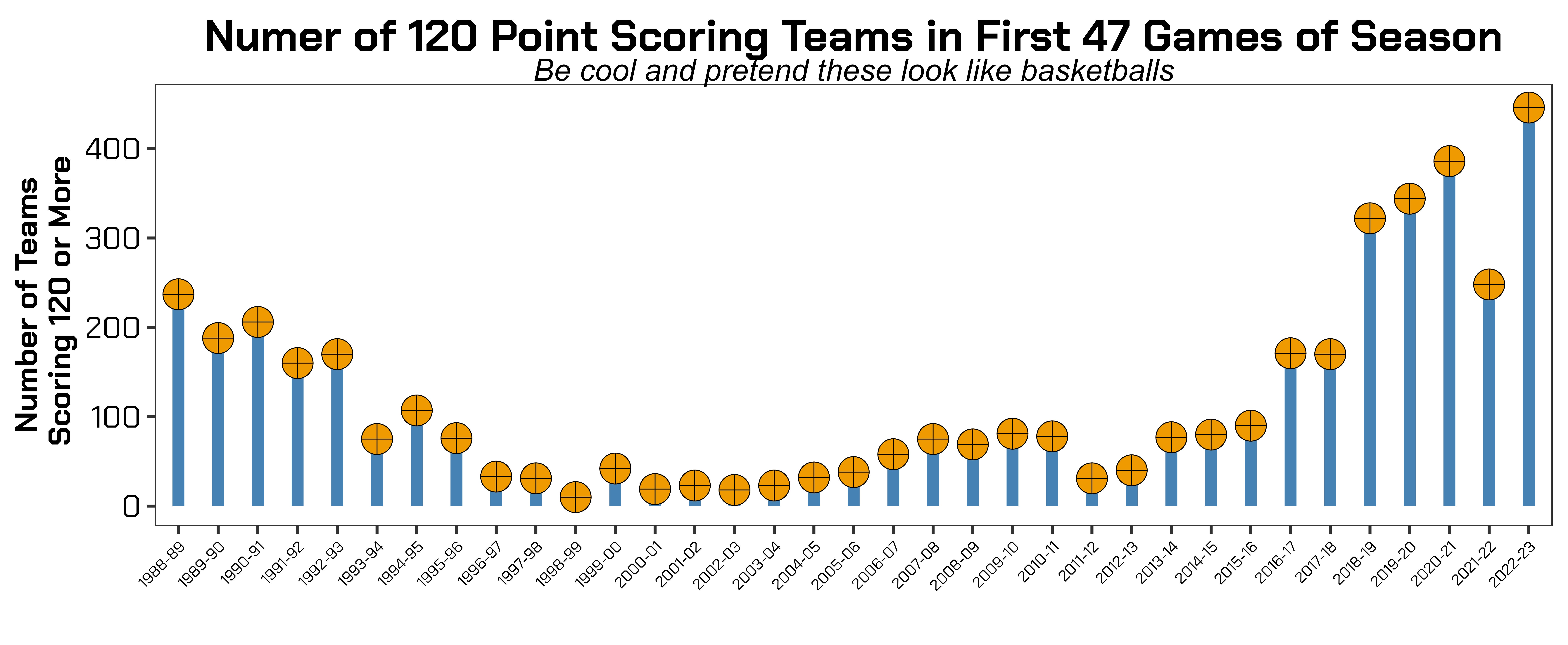 Conjuring absurd NBA stats should be pretty easy seeing as how comically skewed the game has grown offensively. It's really a perfect spin to my schtick and emphasizes my take that the league is sick and in need of treatment. And since I'm purporting to be a doctor for this bit I guess that makes me Patch Adams because we may as well just lean into it all and laugh.