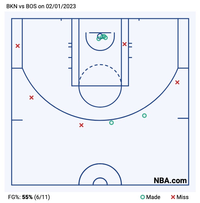 A majority of those makes around the rim came in the first quarter, and when defenses are so focused on Tatum/Brown it leaves driving lanes for the Celts bigger guards. Remember, the Nets are throwing out perimeter defenders that can't stop shit, so using your size and athleticism to get to the rim is how you have to attack this defense, and that's exactly what White did.