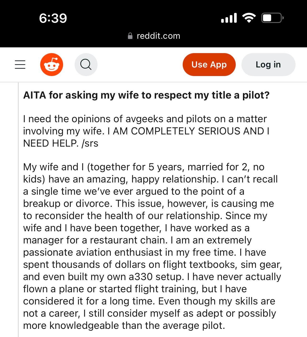 A Reddit User Is On The Brink Of Divorce Because His Wife Won't Introduce Him As A Pilot, Despite The Fact He Is Not A Pilot And Just Plays A Flight Simulator