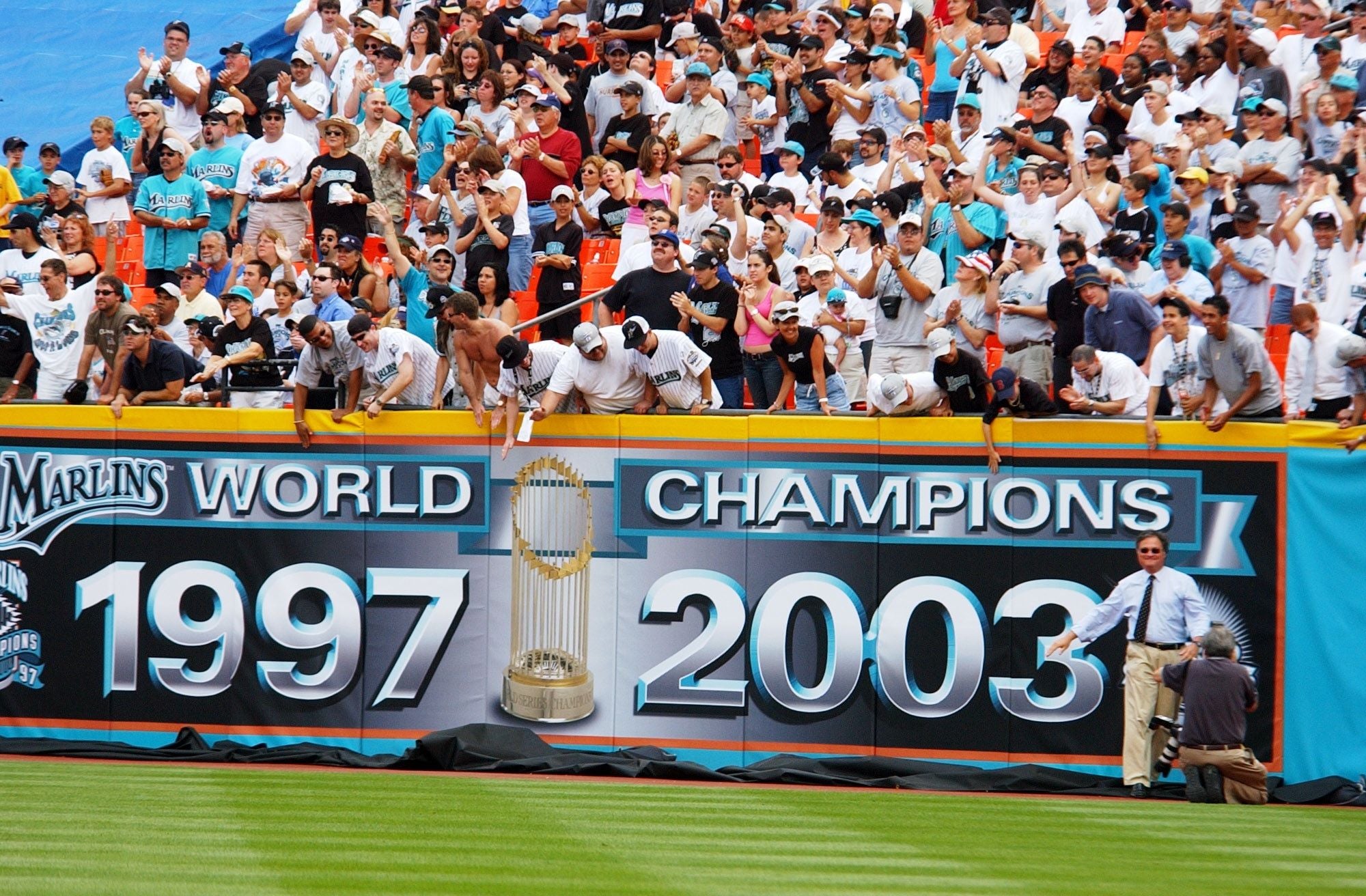 This obviously goes to the Marlins. It's so easy to look past the Marlins success because it wasn't sustained. There is only one player (Jeff Conine) that was on both World Series rosters. The fire sales, the stretch of losing since 2003. It's been a rocky road.