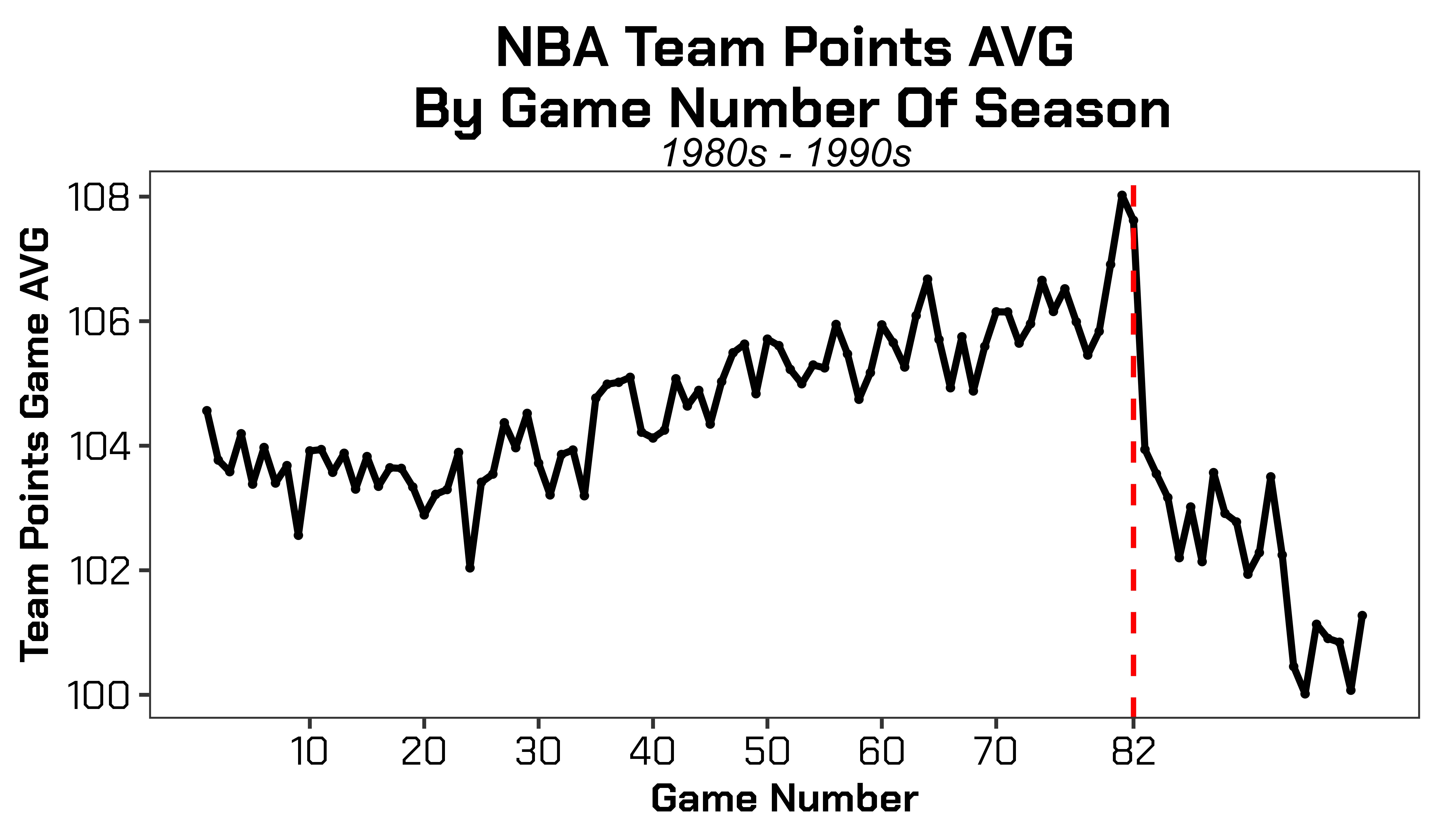 This is an important question because we all know teams basically go through the motions for much of the season so we need some backing to defend the fact that us casuals haven't been crushing League Pass since October. Historically speaking, teams have always began going full speed on defense on precisely the 83rd game of the season. For Sacramento Kings fans, that means the playoffs. This is isn't just a new age NBA thing either, it's kinda always been like this.