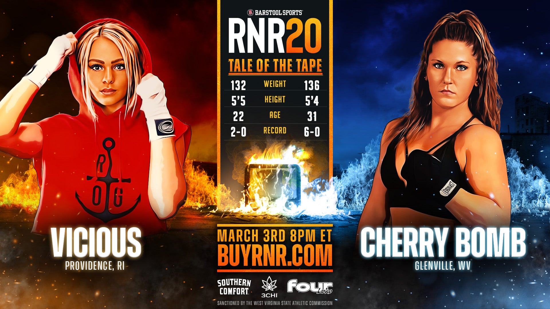 WHO YA GOT ON FRIDAY NIGHT? The Women's Title Belt will be on the line and after taking a few events off, CHERRY BOMB seems primed to explode at RNR20. She very well could be the greatest champion Rough N' Rowdy has ever seen and certainly the best female fighter to step in our ring so far. COUNTRY GIRL STRONG…