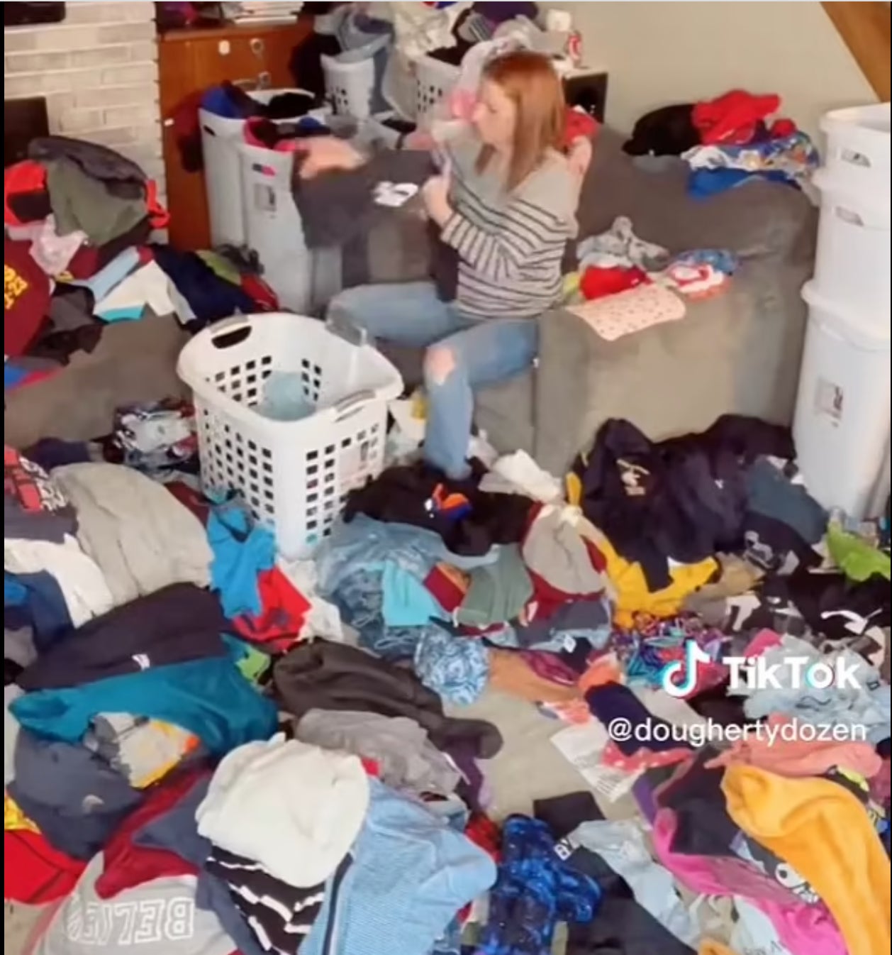 Is this legit because I'm beginning to think this is a stunt for tiktok. There's no way a mom with a brain would allow her 12 kids to away with whatever it is they're doing while she rolls socks and folds underwear for the entire Godfather Part 1.