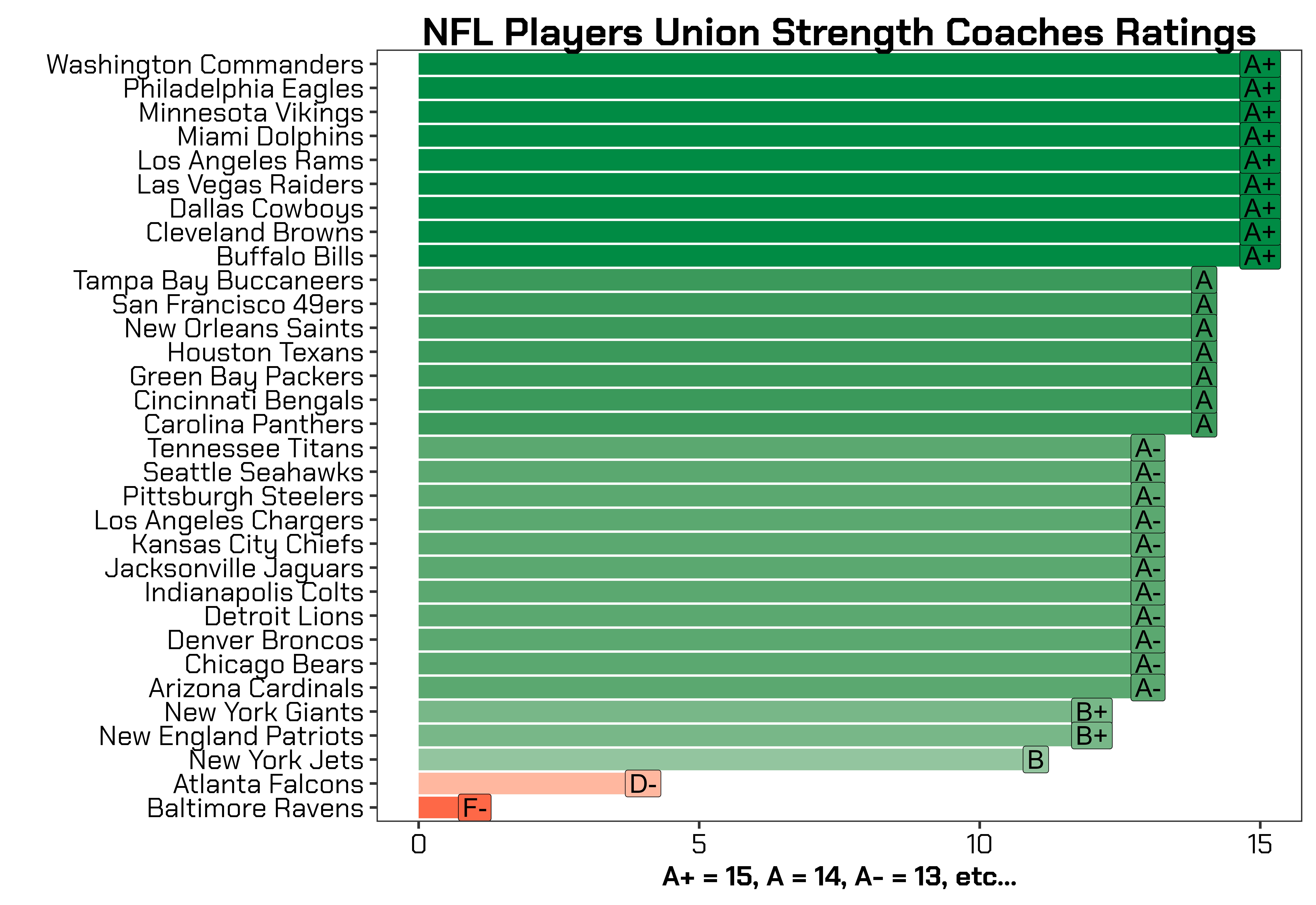 OK, this advice only works when the actual employer is giving the survey - not when a representative union does so to railroad the company. I have to assume teams had no choice to opt out which tells me this entire thing was a ploy from the players union to take shots at certain teams. That's petty as hell and you know what - I respect the fuck out of that. They even went ahead and re-coded the Likert 1-5 scale into a school grade format so the internet could all destroy the teams that absolutely failed. In more professional settings, a team would have the results communicated in a more constructive fashion with positives pointed out for encouragement first to soften the blow of needed changes. For example - to pick a team at complete random here - the Commanders team report might look like: