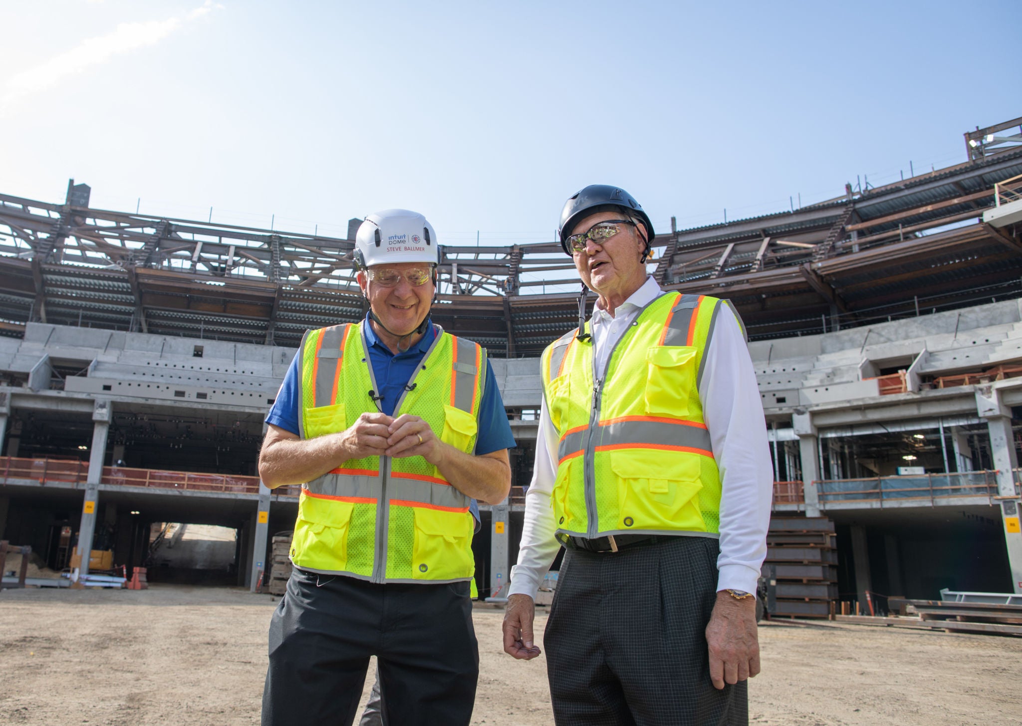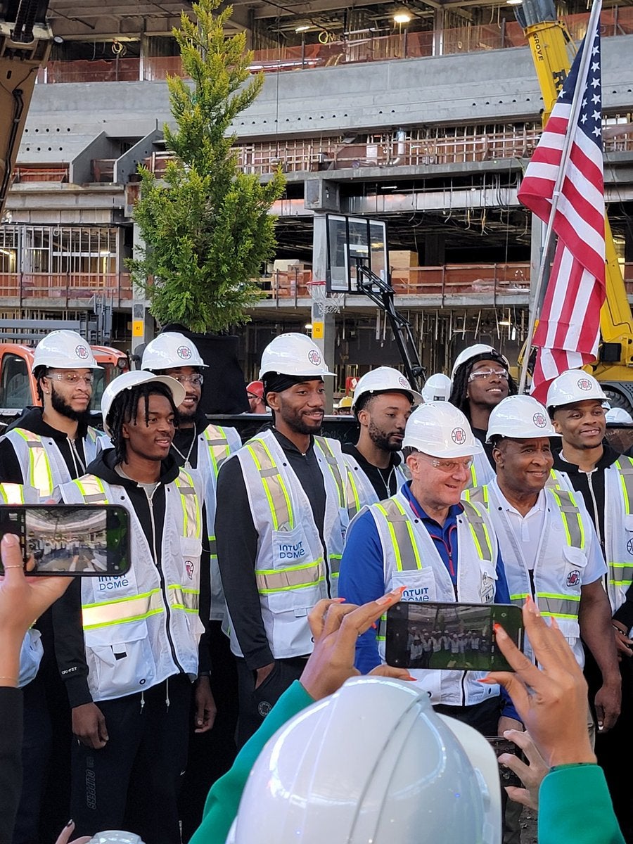 Well here we are about 2.5 years later, and the entire Clippers team came out to the site to check in on the construction. As you can imagine, Steve Ballmer is still VERY excited about how many toilets this thing is going to have