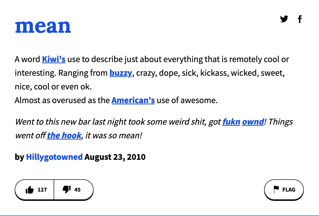 Absolutely fucking awesome. Or should I say absolutely fucking mean (Kiwi definition)? I just know it's more awesome than any other mean clip I've seen today.