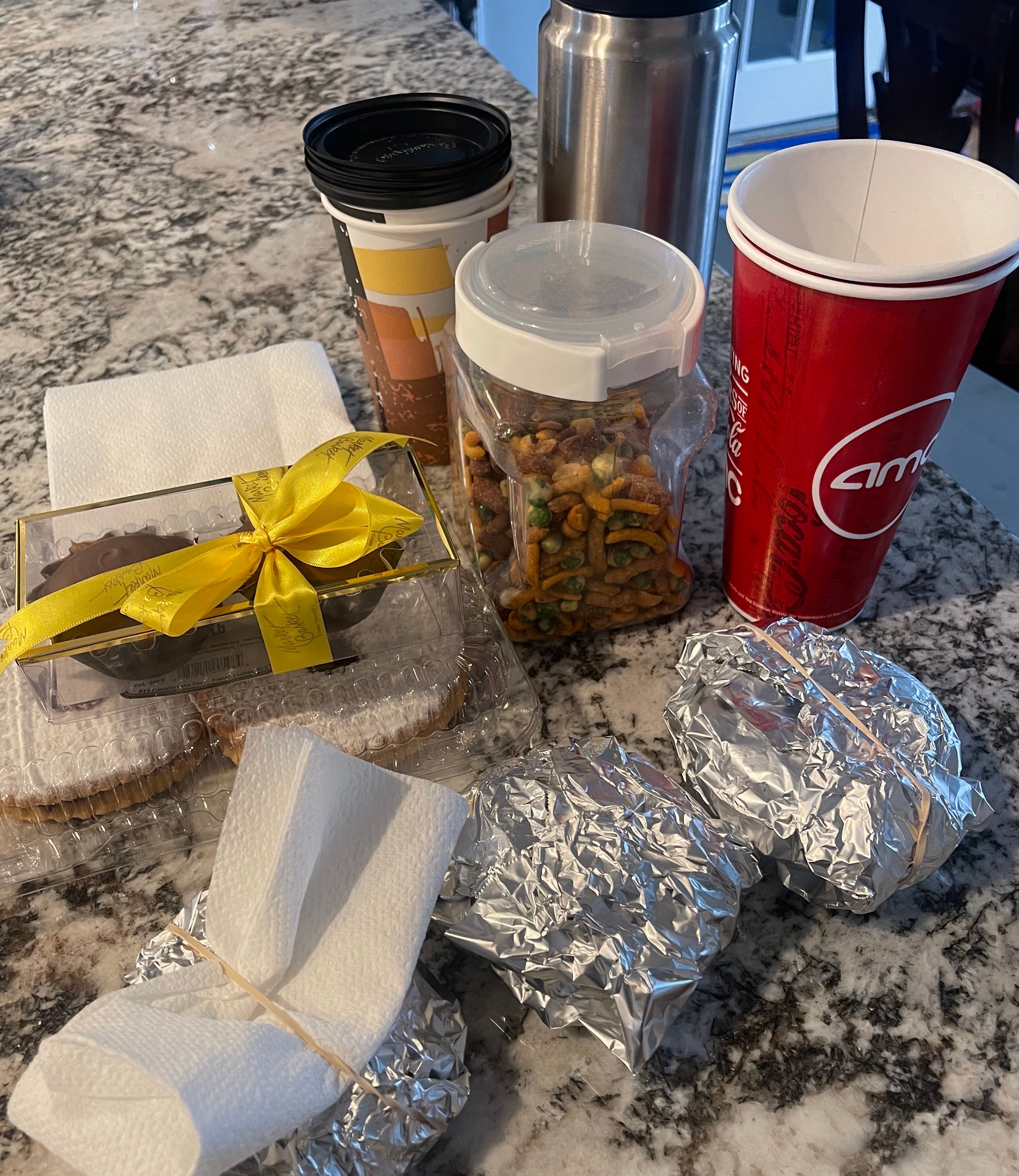 - a couple of soda cups we saved from last movie we saw